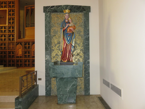 In November 2013, the tabernacle was moved to its original position behind the altar and a new statue of the Blessed Virgin Mary and the Christ child was purchased and placed at the previous site of the tabernacle. A new candlestick reminiscent of an early model was placed to the left of the tabernacle.